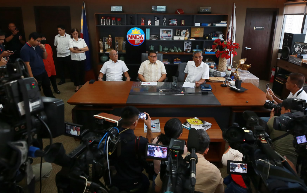 【菲龙网专讯】2026年1月5日,大马尼拉发展署(MMDA)代理主席唐·阿尔特斯(Don Artes)与新任总经理尼古拉斯·托雷三世(Nicolas Torre III)在帕赛市MMDA总部举行记者会