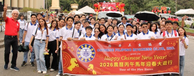 菲华工商总会理事长曾国强率诸同仁带领 「点亮未来」参与岷市丙午春节花车巡游 菲华