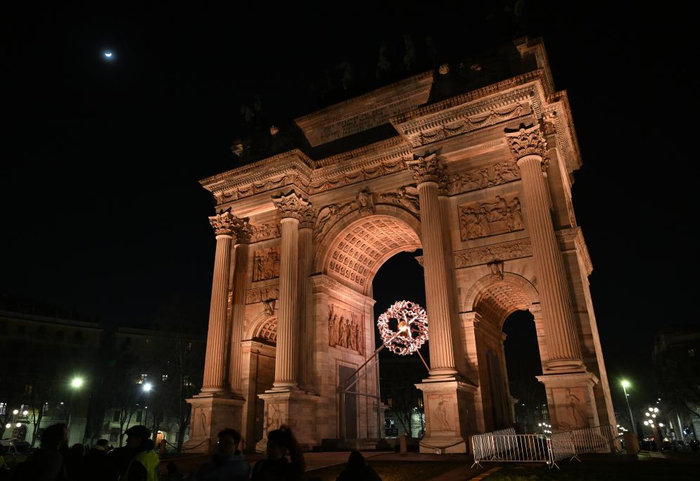 这是2月22日在意大利米兰拍摄的主火炬。新华社记者 武巍 摄